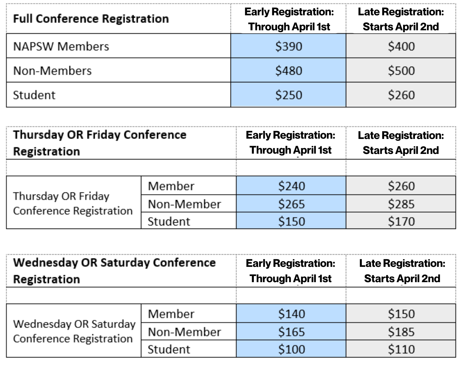 Early bird registration will occur from 2/13/2026 through 4/1/2026 at 11:59 pm (EST)